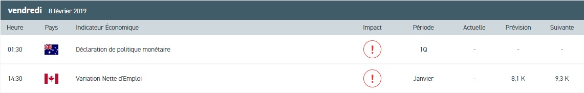 Après un jeudi très animé sur les marchés, la session boursière du jour promet d’être tout autant passionnante. Et pour cause, outre les inquiétudes associées au ralentissement de la croissance mondiale, les investisseurs sont préoccupés par le déroulement des négociations commerciales entre la Chine et les Etats-Unis. Par ailleurs, ce vendredi sera relativement peu fourni en matière de statistiques macroéconomiques. Nous nous intéresserons aux chiffres du chômage du mois de janvier au Canada et à l’indice Baker Hughes d’activité pétrolière aux Etats-Unis. Par ailleurs, le marché des actions sera rythmé par les résultats de Philips 66, Hasbro et d’Umicore. Du côté du Japon, le NIKKEI 225 a terminé en baisse de 2,01 % à 20 333,17 points dans le sillage de Wall Street.
