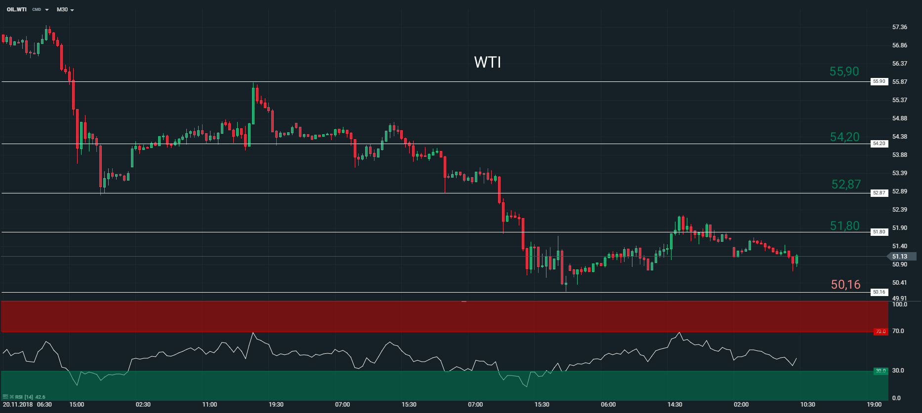 Représentation technique du contrat WTI, en M30