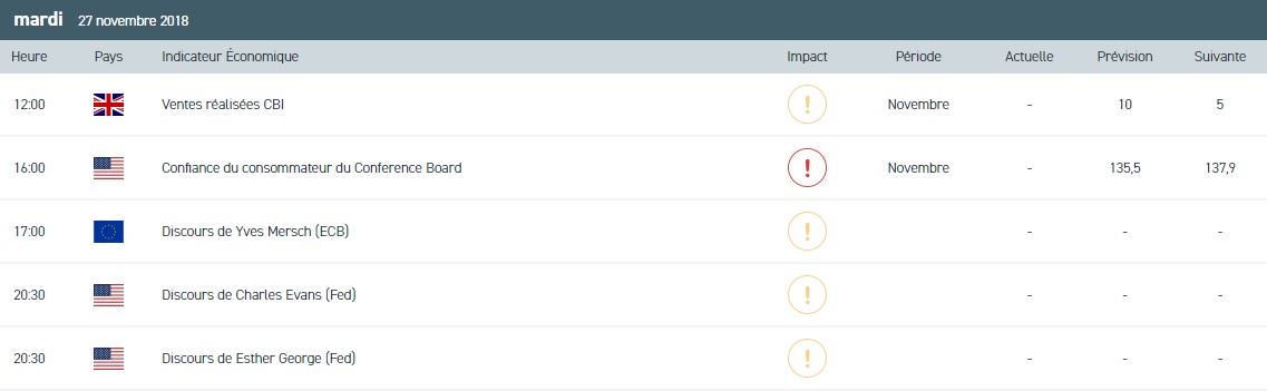 - L’indice de confiance des consommateurs américains du mois de novembre, selon le Conference Board à 16h00