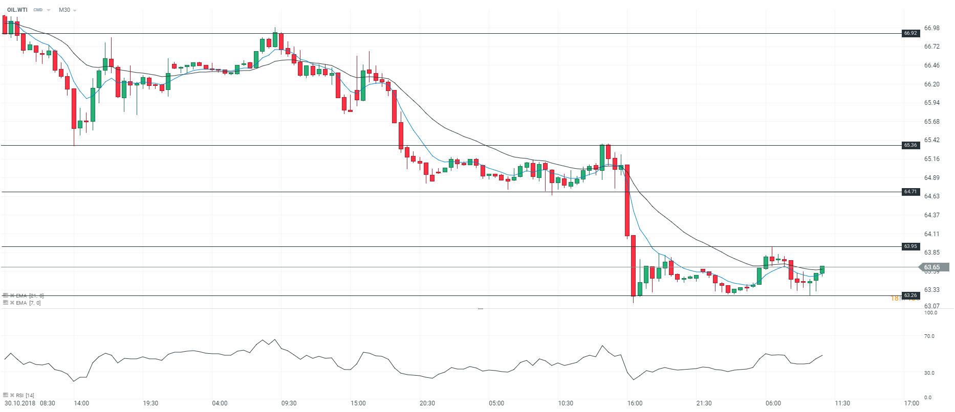Sur le front de la thématique pétrolière, le contrat WTI a terminé jeudi en baisse de 2,48 % à 63,69 dollars le baril. Bien sûr, cette correction s’explique par la forte remontée de la production pétrolière en Russie et par le ralentissement de l’activité manufacturière en Chine. Et pour cause, les PMI manufacturier sont tombés à un plus bas de deux ans au mois d’octobre, alors que les craintes de ralentissement de la croissance sont de plus en plus persistantes. Sur le plan technique, la toile de fond est foncièrement baissière sur le contrat WTI. Néanmoins, nous estimons que les cotations actuelles devraient favoriser un rebond technique, d’autant que le dollar US accuse un léger repli ce matin.