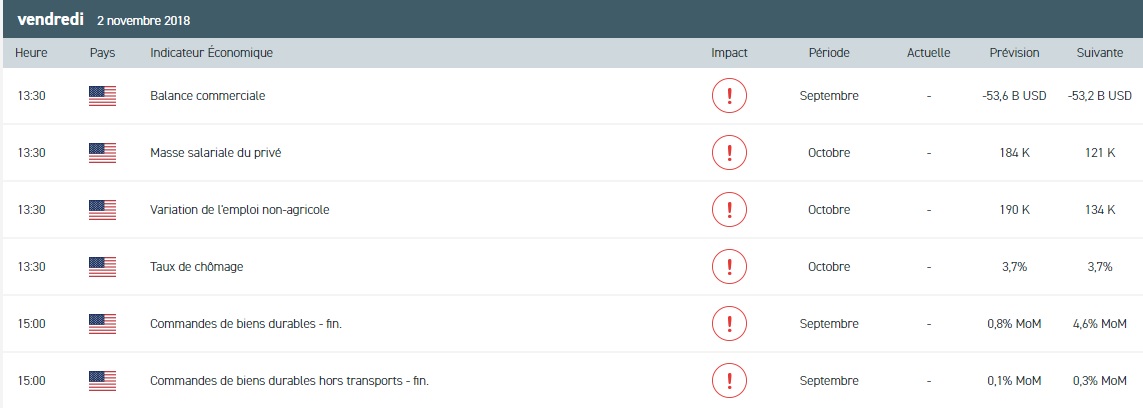 - Les chiffres du chômage du mois d’octobre aux Etats-Unis à 13h30