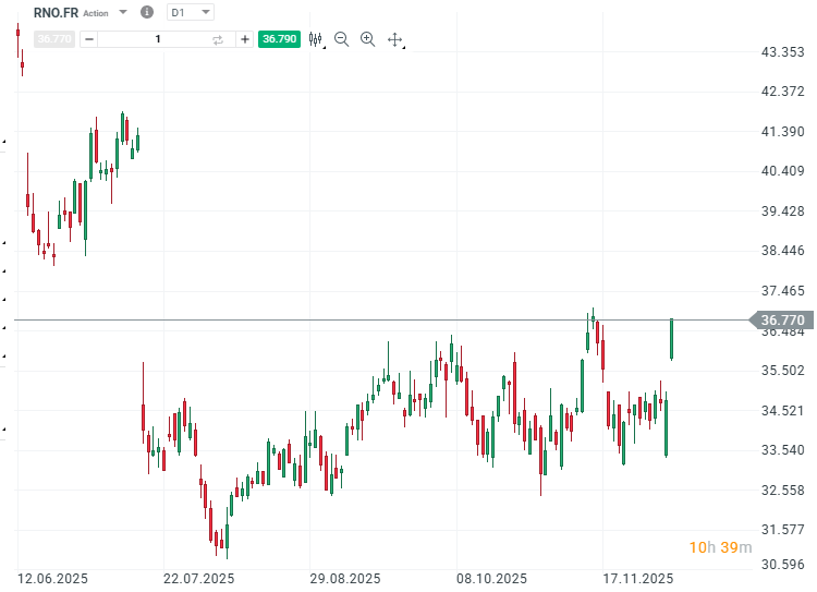 Réactions boursières (RNO.FR en D1)