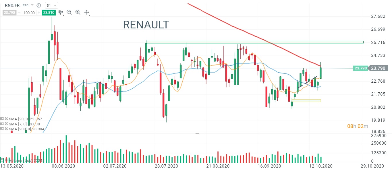 L'amélioration des ventes pour le secteur automobile a permis à la valeur Renault (RNO.FR) de se hisser au contact de sa moyenne mobile à 200 jours. En cas de franchissement de cette dernière, la prochaine résistance est à 25,60€, soit le sommet du 8 septembre. Source : xStation5