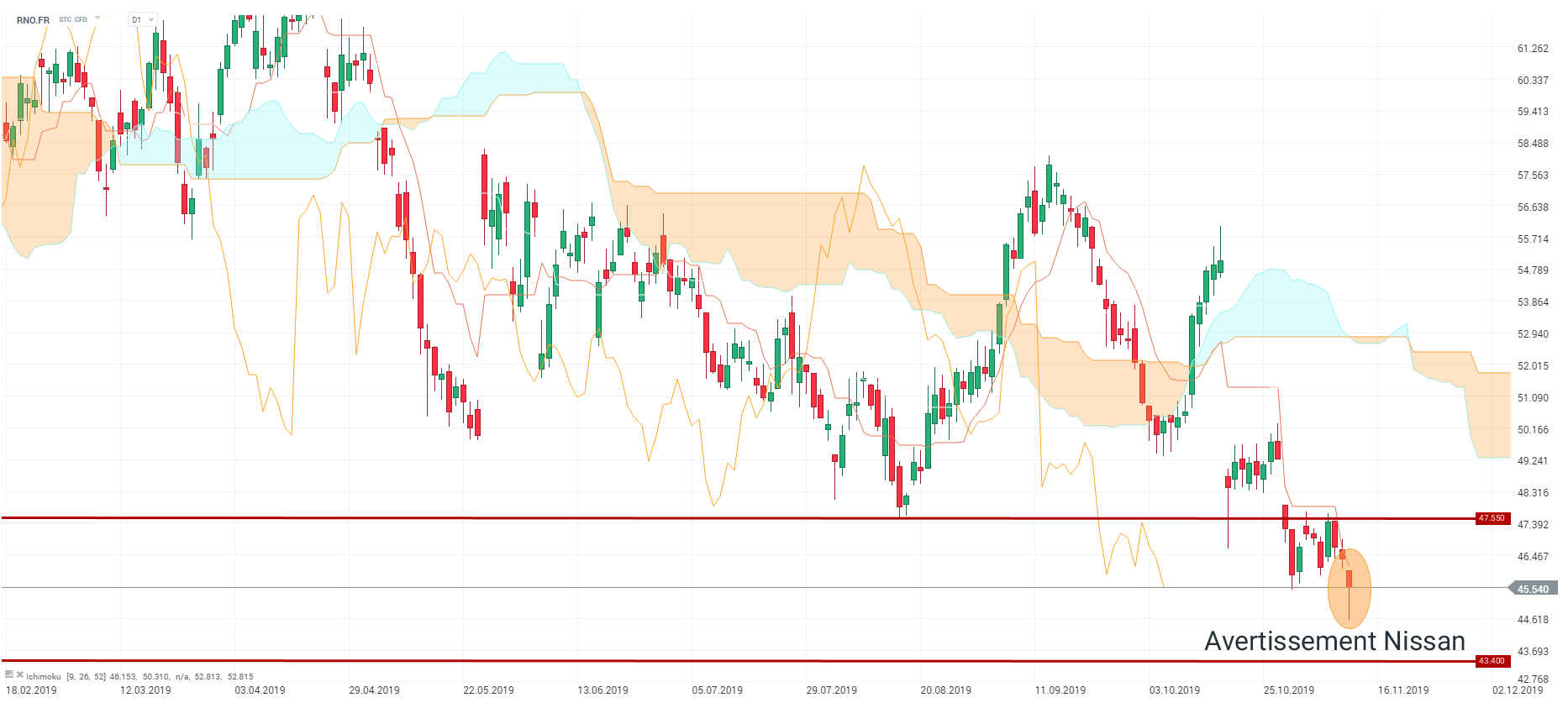 Le groupe nippon Nissan a annoncé une baisse de ses bénéfices de 70 % et a réduit ses perspectives pour l’année (qui s’achèvera en mars 2020). L’avertissement lancé par Nissan pénalise le groupe français Renault qui détient 43.4 % du capital de la société japonaise.