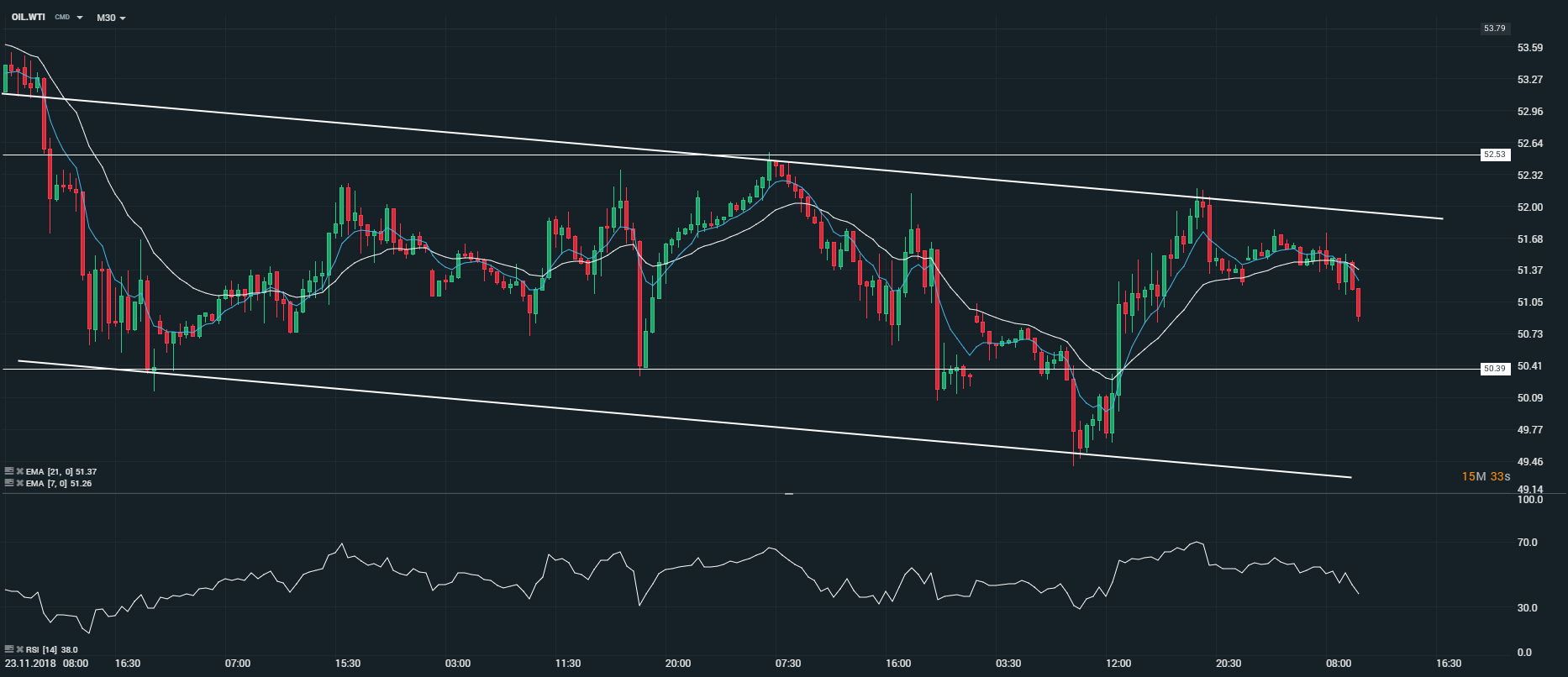 Les rumeurs vont bon train avant la rencontre prévue demain entre Donald Trump et le président chinois Xi Jinping, en marge du sommet du G20. D’après le très sérieux Wall Street Journa (WSJ), les Etats-Unis et la Chine étudient un accord qui a vocation à suspendre l’entrée en vigueur des droits douanes supplémentaires jusqu’au printemps 2019. Au moment où nous écrivons ces lignes, il est difficile de se prononcer sur l’issue de la rencontre en raison des nombreux points bloquants. Pour rappel, les Etats-Unis exigent des garanties en matière de protection des brevets, de transfert de technologie et de droits de douanes. Enfin, les indices occidentaux sont déstabilisés ce matin par les derniers chiffres PMI du secteur manufacturier chinois. Ces derniers ont enregistré une baisse de 0,2 point à 50 au titre du mois de novembre.