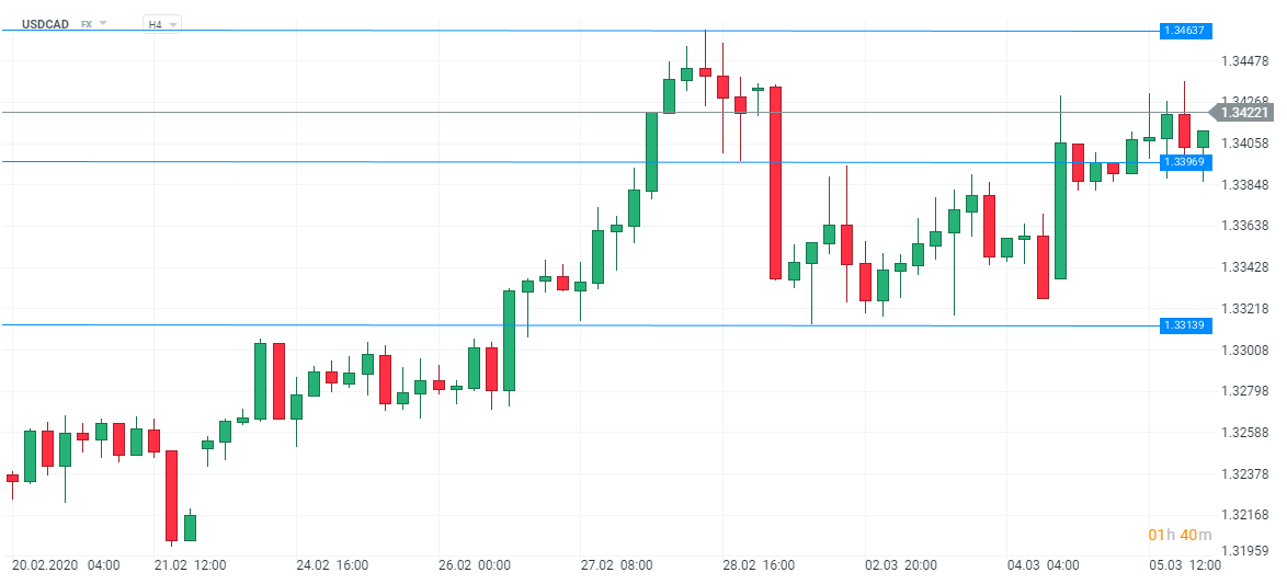 Le prix de la paire de devises USD/CAD se négocie toujours entre 1,3313 et 1,3463, ce qui limite ses mouvements. Seule une sortie permanente de la zone de consolidation pourrait conduire à une amplitude plus importante des cours. D’ici là, les investisseurs devraient s’attendre à un certain mouvement latéral. Source:xStation5