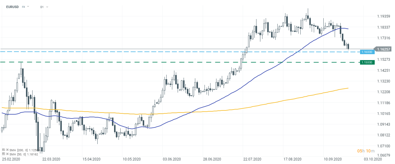 Suite à la récente flambée du dollar américain, la paire EURUSD s'est rapprochée de la barrière des 1,16 et pourrait devenir le prochain support à aller chercher. Le dollar reste également extrêmement fort par rapport aux autres devises. Source : xStation5
