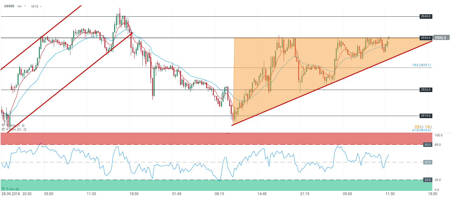 Représentation de l’indice S&P 500 (US500) en 15 minutes (M15)