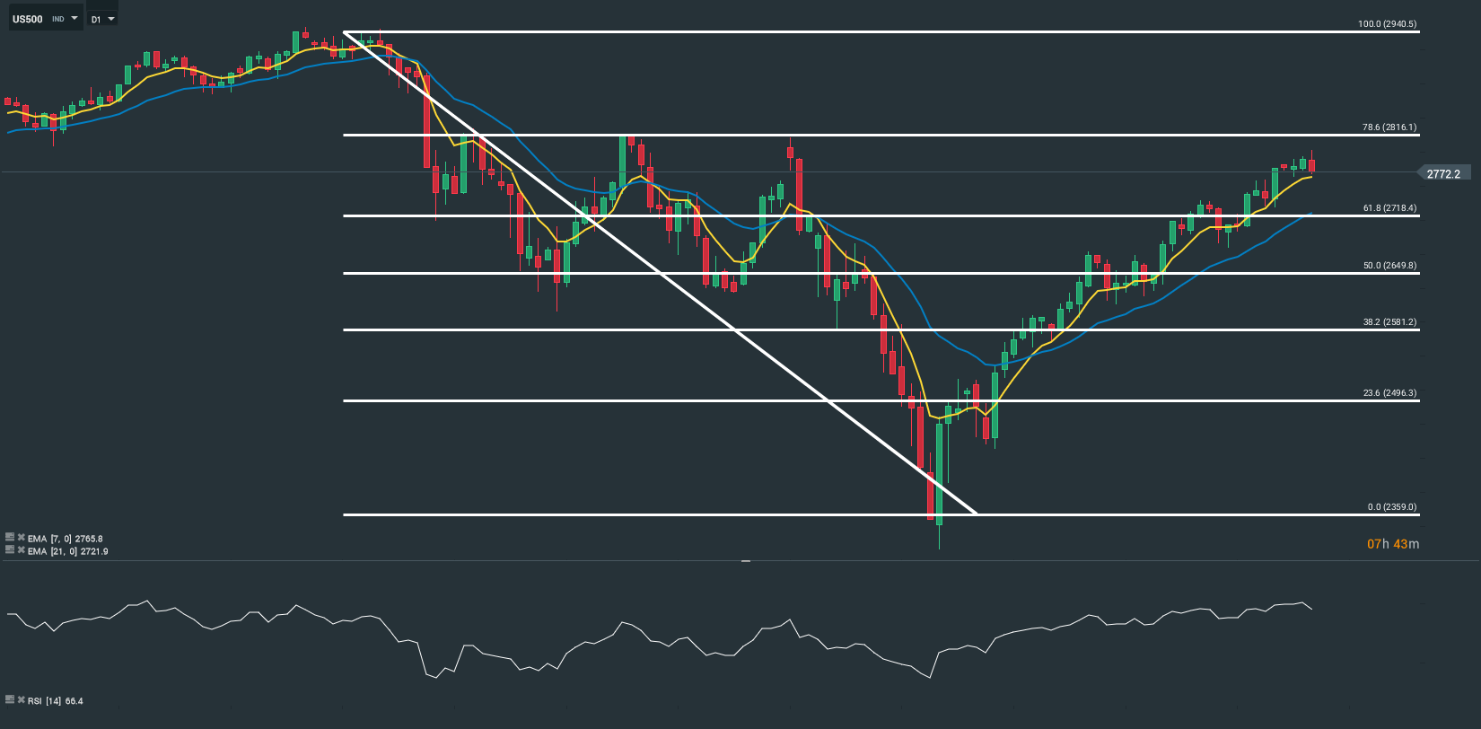 Représentation technique de l’indice S&P 500, en D1