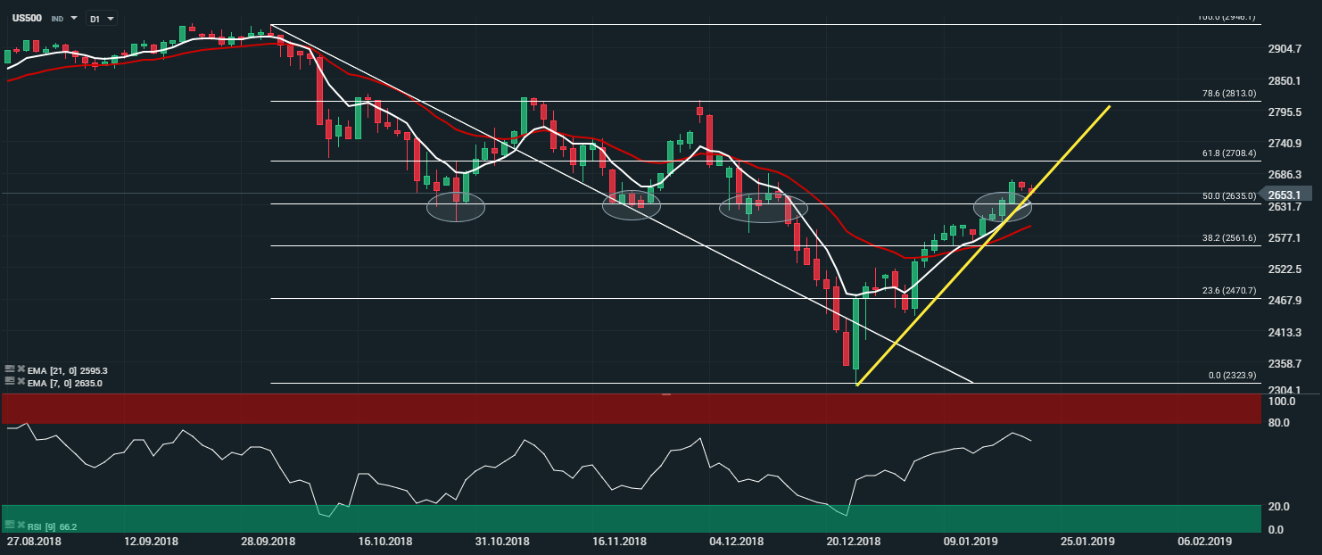 Représentation de l’indice S&P 500 (US500) en unité de temps journalière (D1)