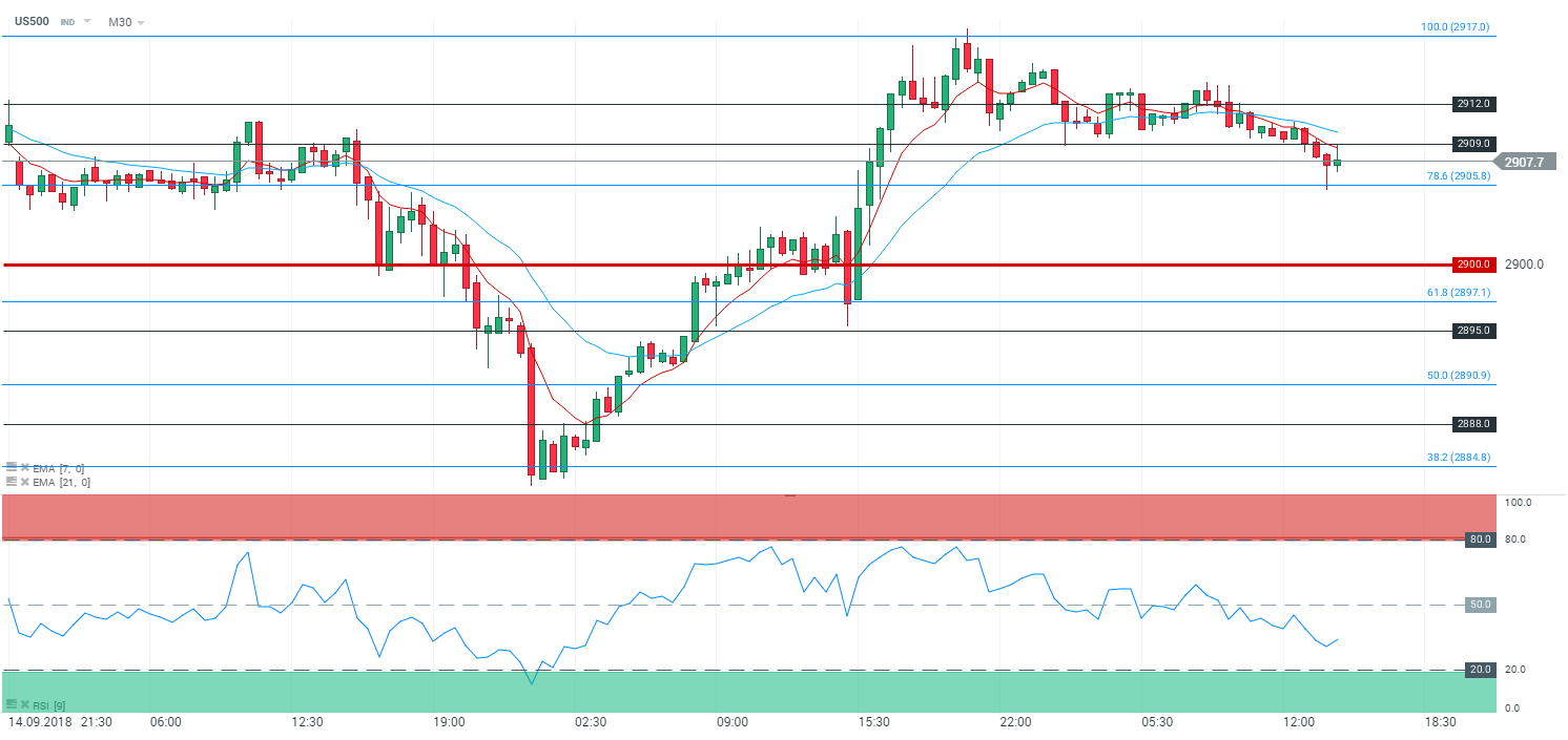 Représentation du S&P500 (US500), en 30 minutes (M30)