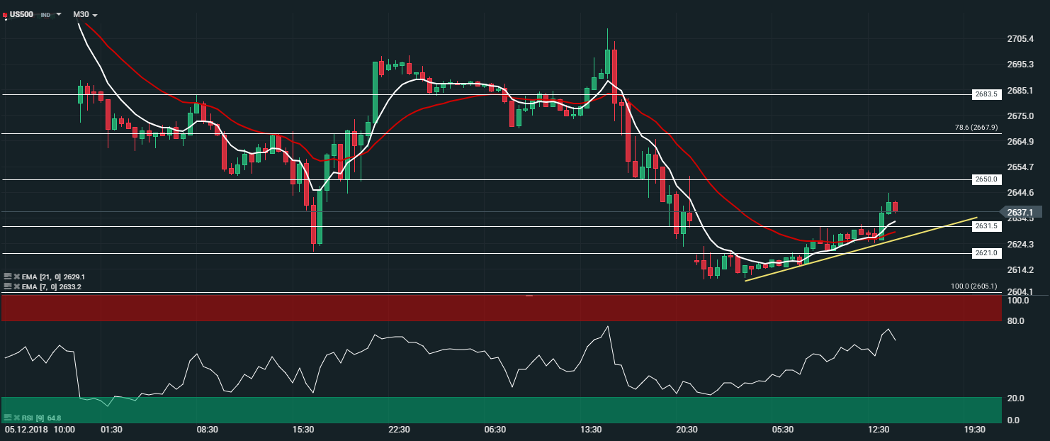 Représentation de l’indice S&P 500 (US500), en unité de temps 30 minutes (M30)