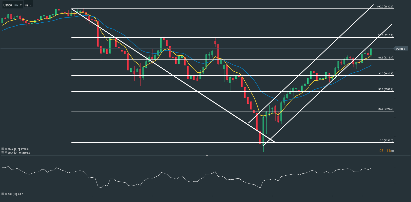 Au lieu de cela nous voyons l’indice américain S&P500 naviguer en territoire positif, porté par les valeurs financières. Les investisseurs étant optimistes quant aux négociations commerciales en cours visant à résoudre un conflit tarifaire meurtrier entre les États-Unis et la Chine. Le président Donald Trump a déclaré que les pourparlers avec la Chine « se déroulaient extrêmement bien » et que les États-Unis étaient plus proches que jamais d'un accord commercial "réel" avec Pékin. Les deux premières puissances économiques poursuivront les discussions la semaine prochaine à Washington.