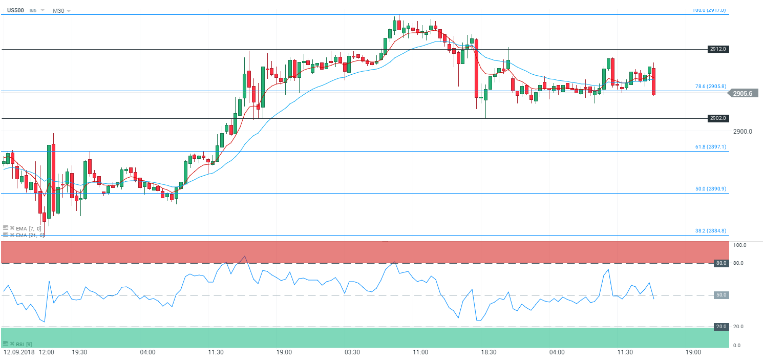 Représentation du S&P500 (US500), en 30 minutes (M30)