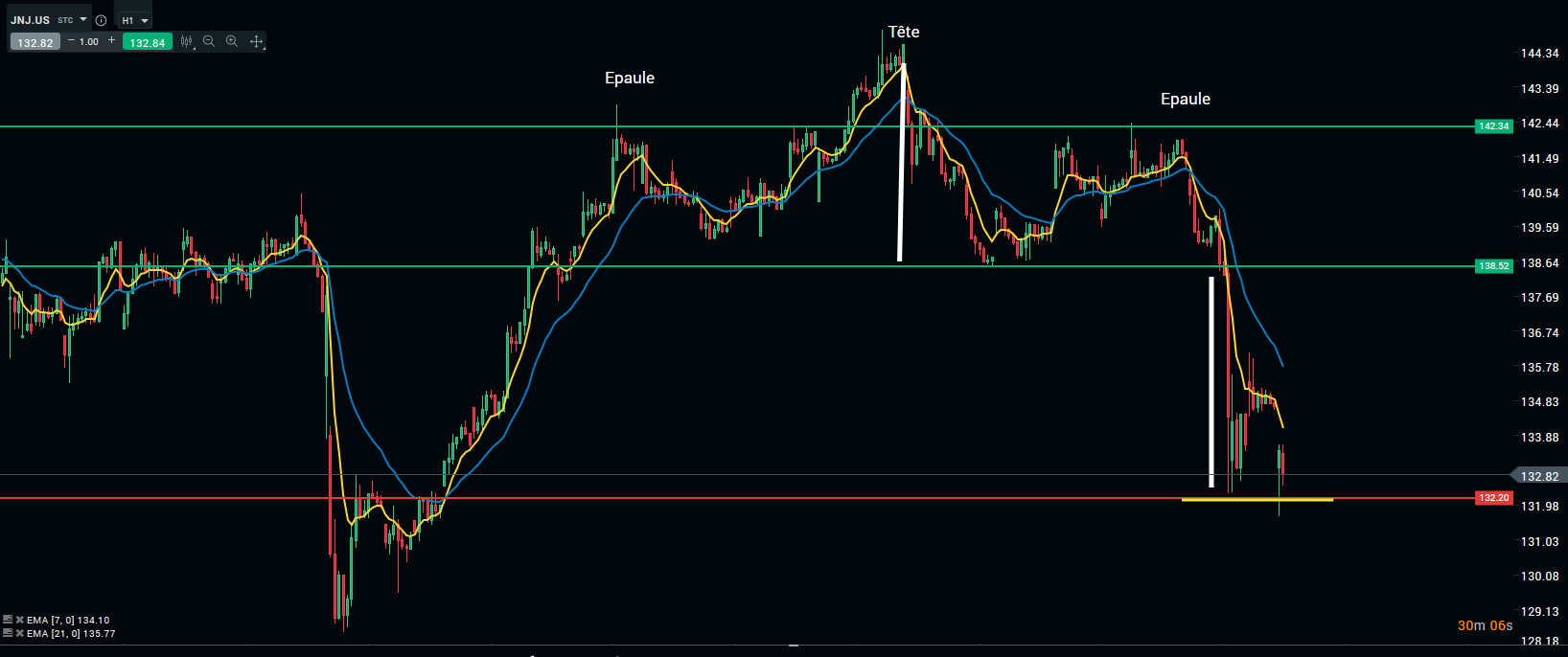 A l’instant où nous rédigeons cette note, le titre recule de 1,44 % à 132,77 USD l’action. Les vendeurs ont profité de la configuration actuelle (épaule-tête-épaule) pour ramener JNJ.US vers les 132,20 dollars. Peu à peu nous voyons les haussiers reprendre la main. Pour l’instant, la tendance demeure à la baisse.