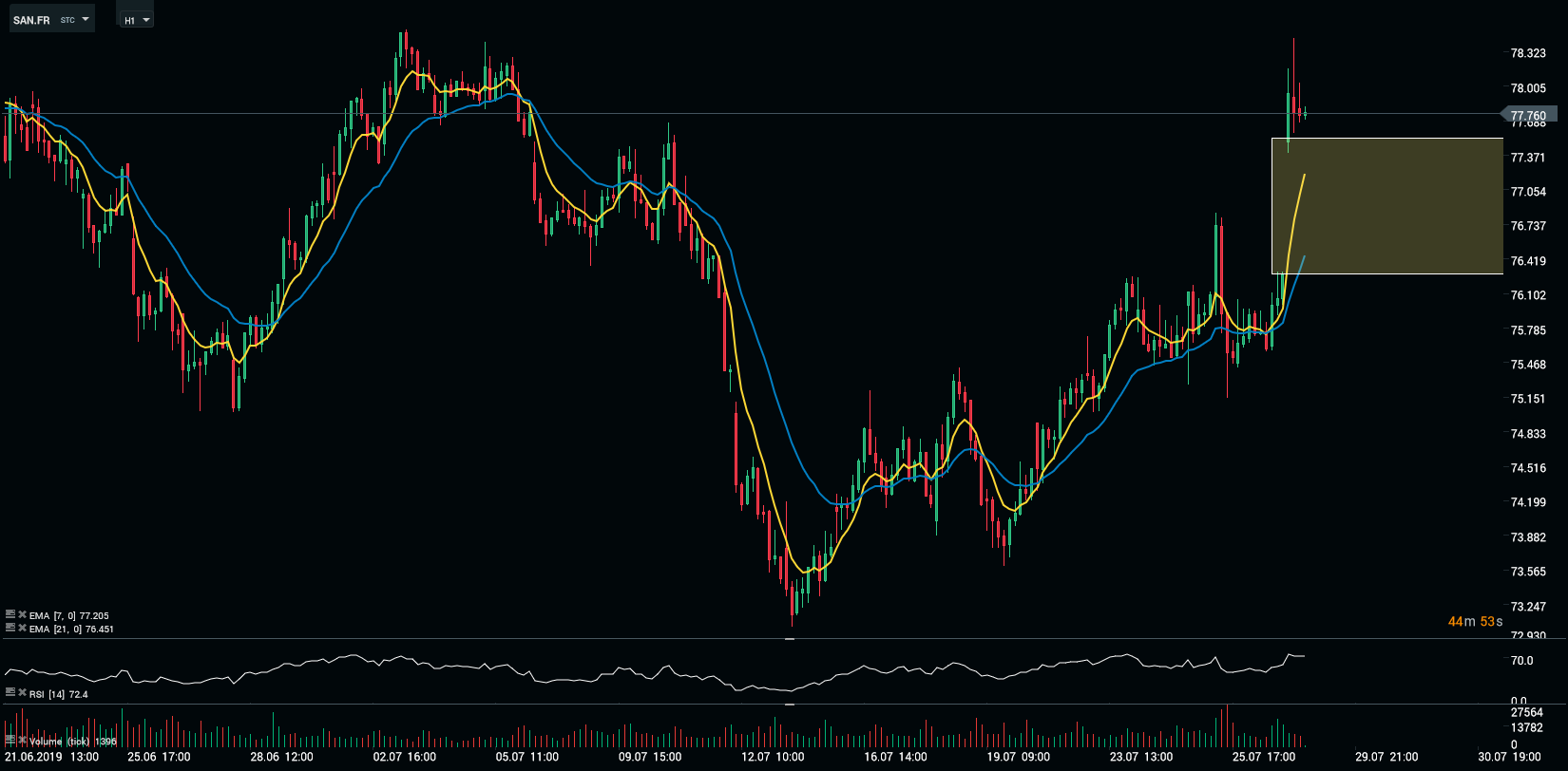 Sur le plan technique, Sanofi (SAN.Fr) a ouvert en gap haussier. Le titre est parvenu à rallier les 78,46 euros avant de céder du terrain. Pour l’heure, les haussiers utilisent la borne supérieure du gap (haut du rectangle, 77,79 euros) comme appui en vue d’une possible hausse.
