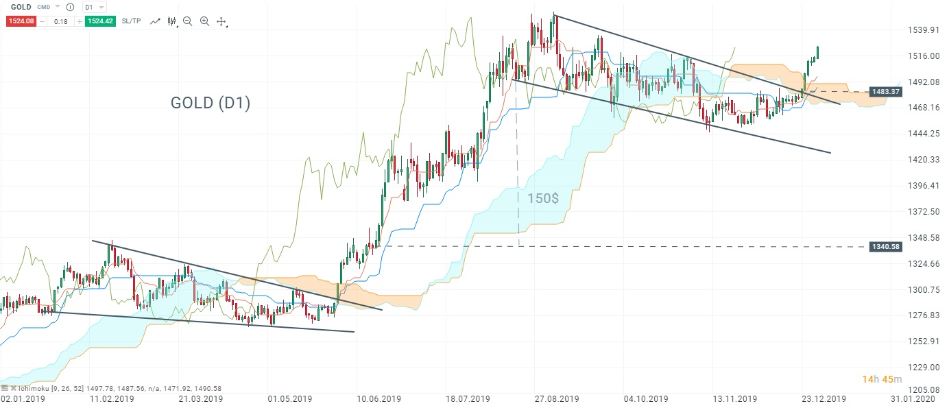 La faiblesse du dollar et la chute des actions ont fait grimper le cours de l'or. Le cours de l'or a dépassé 1500$ au cours des dernières sessions et aujourd'hui, la prochaine zone importante de 1515 est en cours de test.