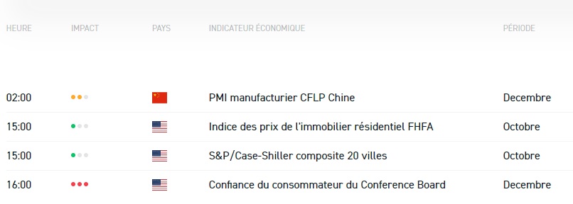 Nous avons été témoins d'un sell-off sur les indices lors de la dernière séance dans la plupart des pays. Cependant, demain, il y aura une séance de bourse limitée dans des pays comme la France, le Royaume-Uni et les États-Unis. Ces ventes doit sont des prises de bénéfices, car il y a eu des signes positifs sur le marché, comme par exemple une bonne lecture économique aux États-Unis et des informations supplémentaires concernant l'accord commercial entre la Chine et les États-Unis. Selon les deux parties, l'accord devrait être signé cette semaine ou la semaine prochaine.