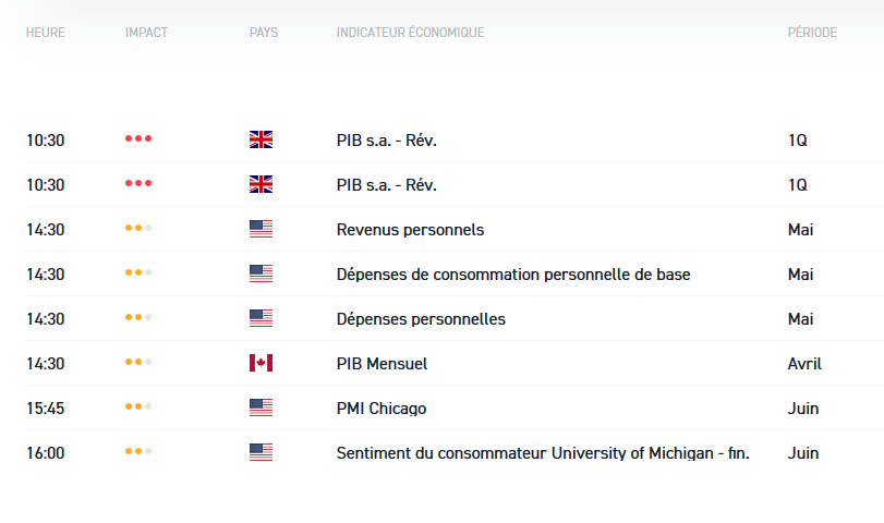 - du « core PCE » américain (indicateur de l’inflation sous-jacente, 14h30)