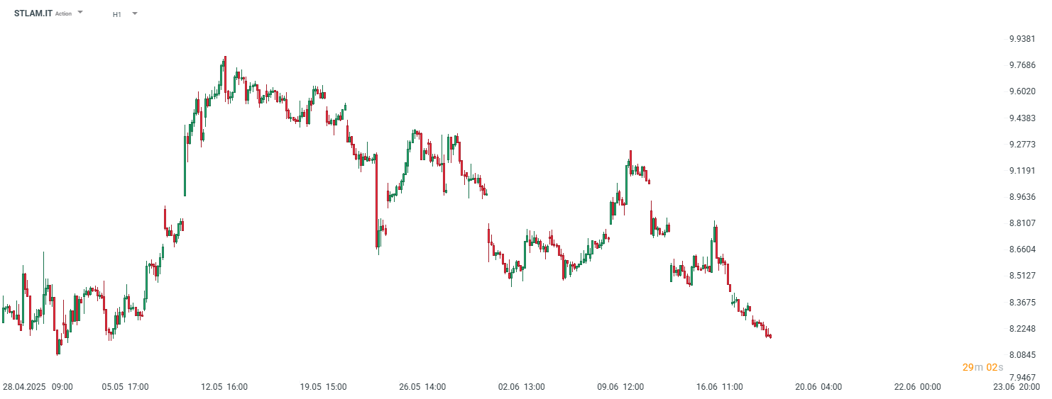 L'action STLAM.IT poursuit sa tendance baissière en période H1, entamée le 11 juin. Source : xStation.
