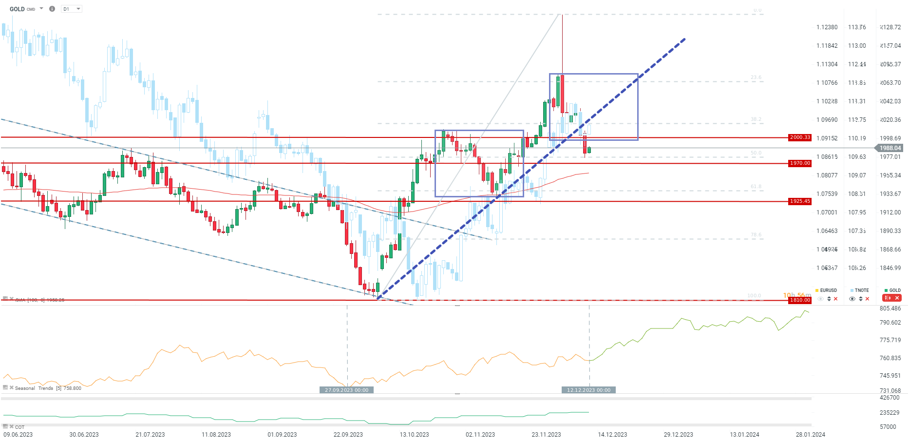 Les rendements ont récemment augmenté mais les modèles saisonniers suggèrent que l'or gagnera jusqu'au début du mois de janvier. Source: xStation5