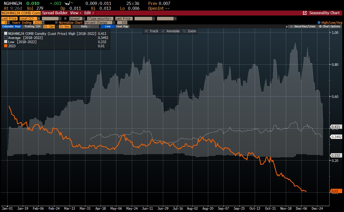 - L'écart entre les contrats de mars et avril (connu sous le nom de Widowmaker) est presque tombé à un niveau négatif, indiquant une quantité excessive de gaz et un manque de demande de gaz pour le dernier mois d'hiver.