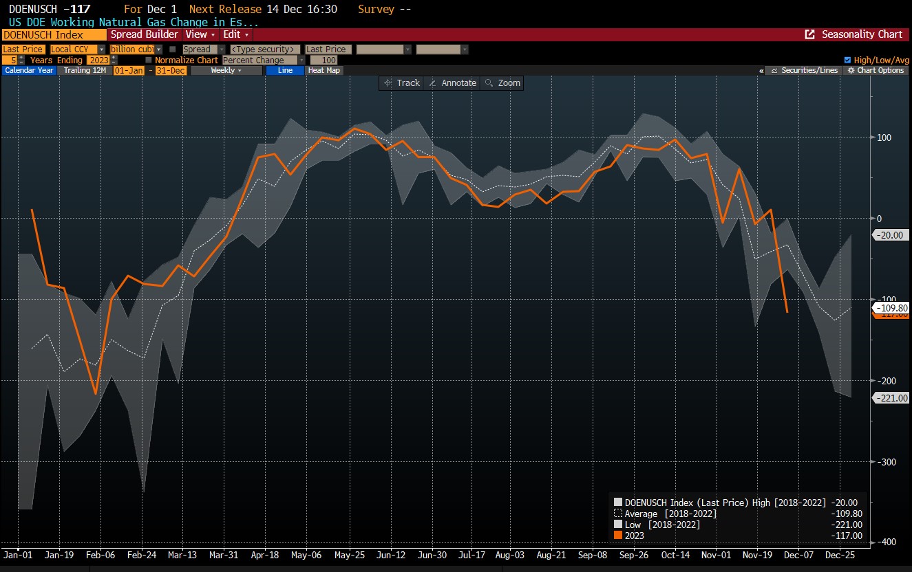 - Le temps actuel de décembre aux États-Unis est meilleur que d'habitude, indiquant une demande de gaz pour le chauffage nettement plus faible.