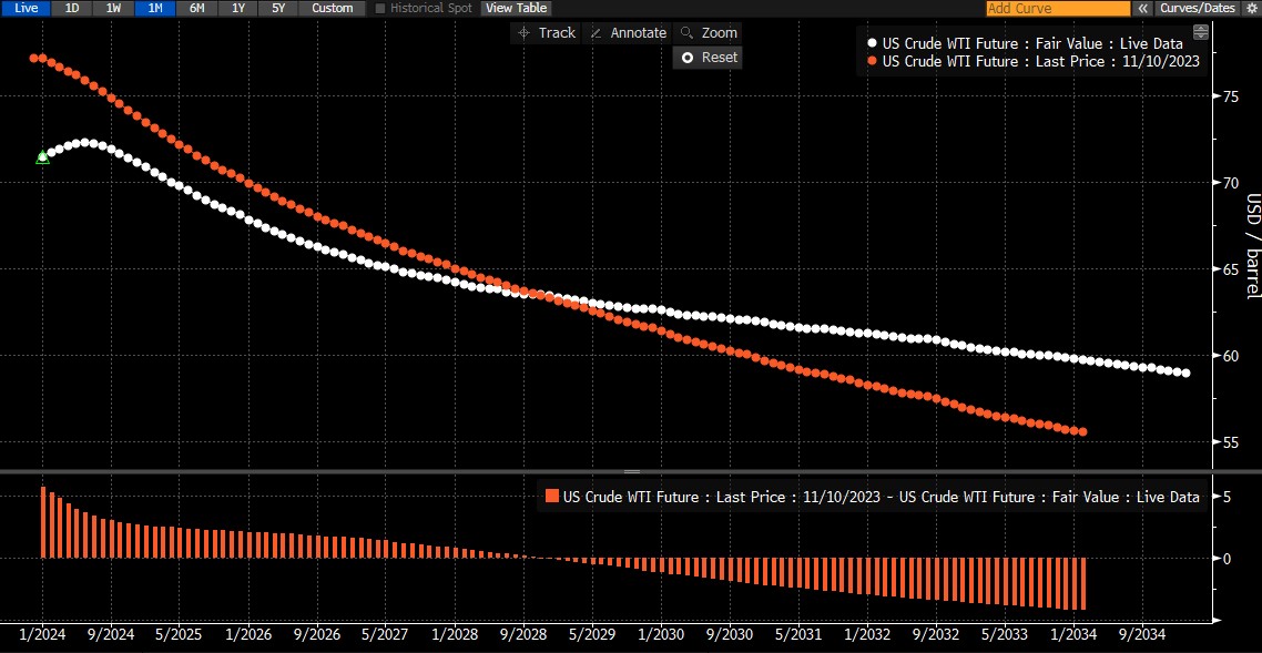 Les prix du pétrole sont en contango pour les six prochains mois. Source: Bloomberg Finance LP