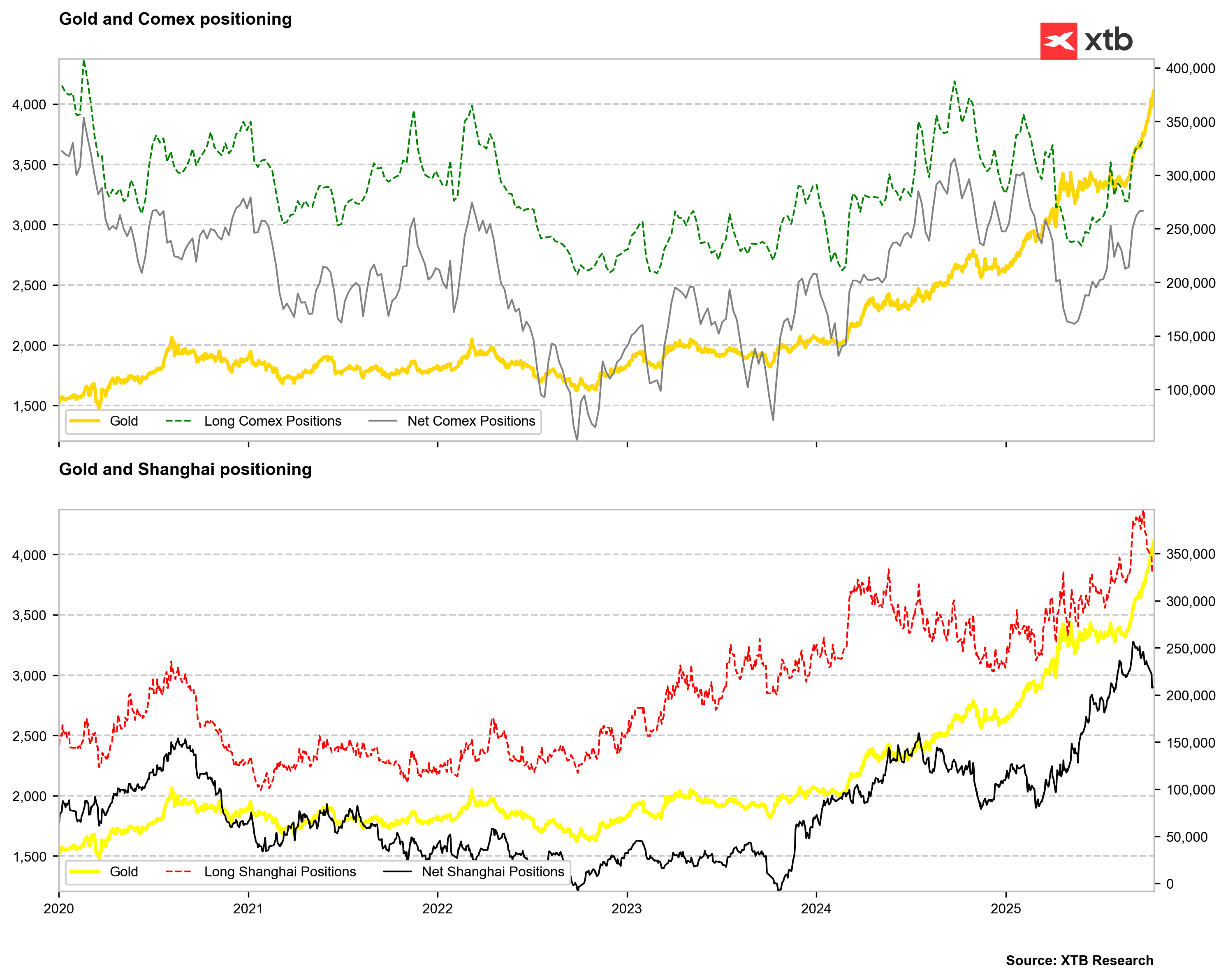 La Chine continue de réduire ses positions spéculatives longues. Les données de la CFTC ne sont pas disponibles en raison de la fermeture des services gouvernementaux. Source : Bloomberg Finance LP, XTB