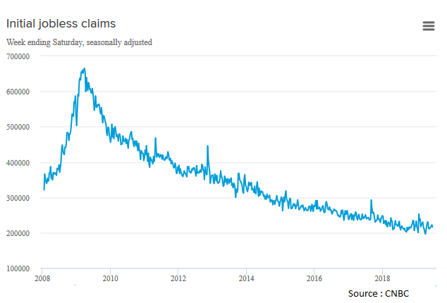 Les inscriptions hebdomadaires au chômage ont chuté plus qu’anticipé. Le Département du Travail a enregistré 216 000 demandes d’allocation chômage durant la semaine du 15 juin. Le consensus anticipait 220 000 demandes. C’est la troisième semaine de baisse consécutive. Fait inquiétant, l’indice de Philadelphie est ressorti en dessous des attentes à 0,3 contre 10,6. Pour l’heure, les marchés à terme américains évoluent en hausse.