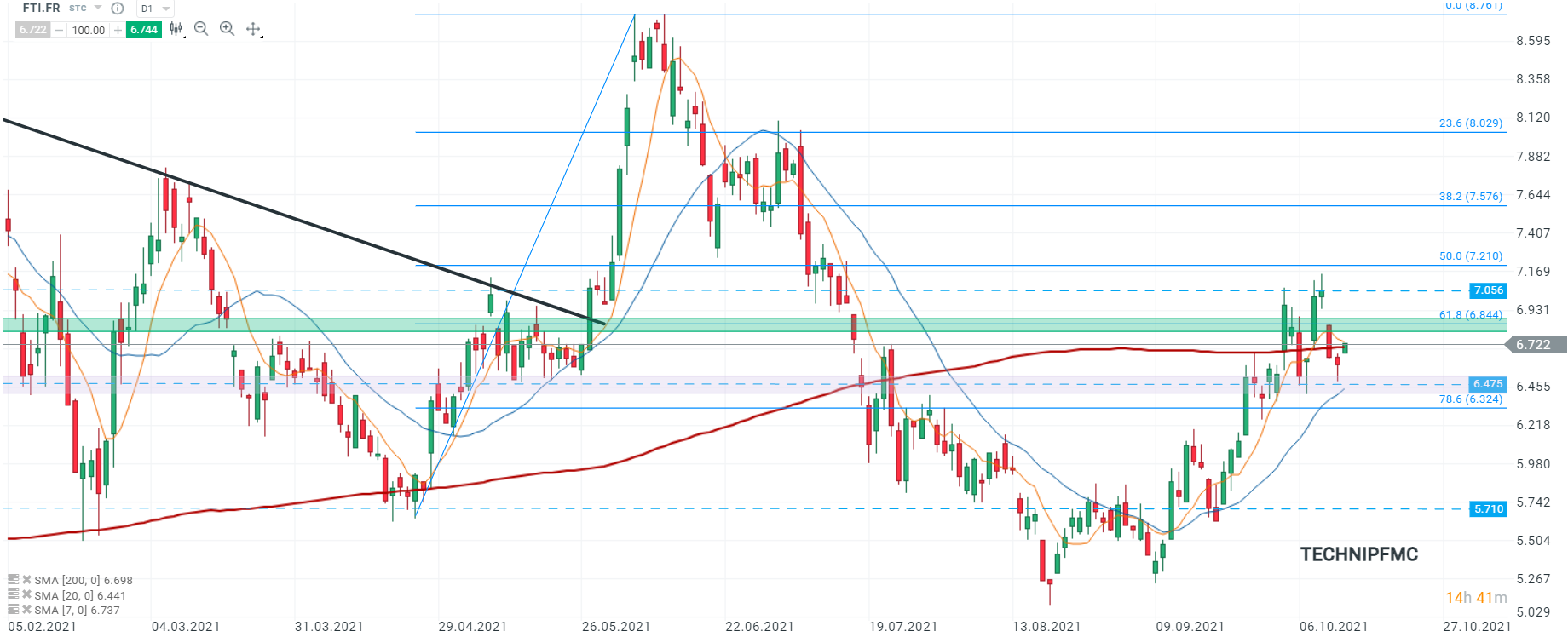 Les cours de Technip FMC (FTI.FR) ont ouvert à la hausse portés par la nouvelle du contrat remporté en Inde. Au moment de la rédaction de ces lignes, les cours se dirigent vers le retracement de Fibonacci à 61,8% de la hausse entamée le 26/04. En cas d’échec de franchissement de ce niveau, le niveau de retracement à 78,6% constitue la prochaine cible pour les vendeurs. Source : xStation5