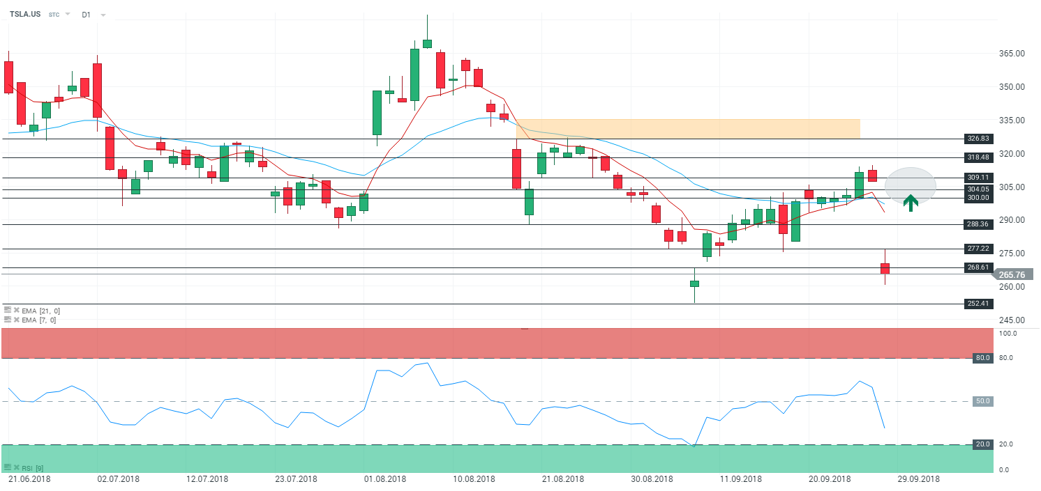 Représentation du titre Tesla (TSLA.US) en unité horaire (H1)