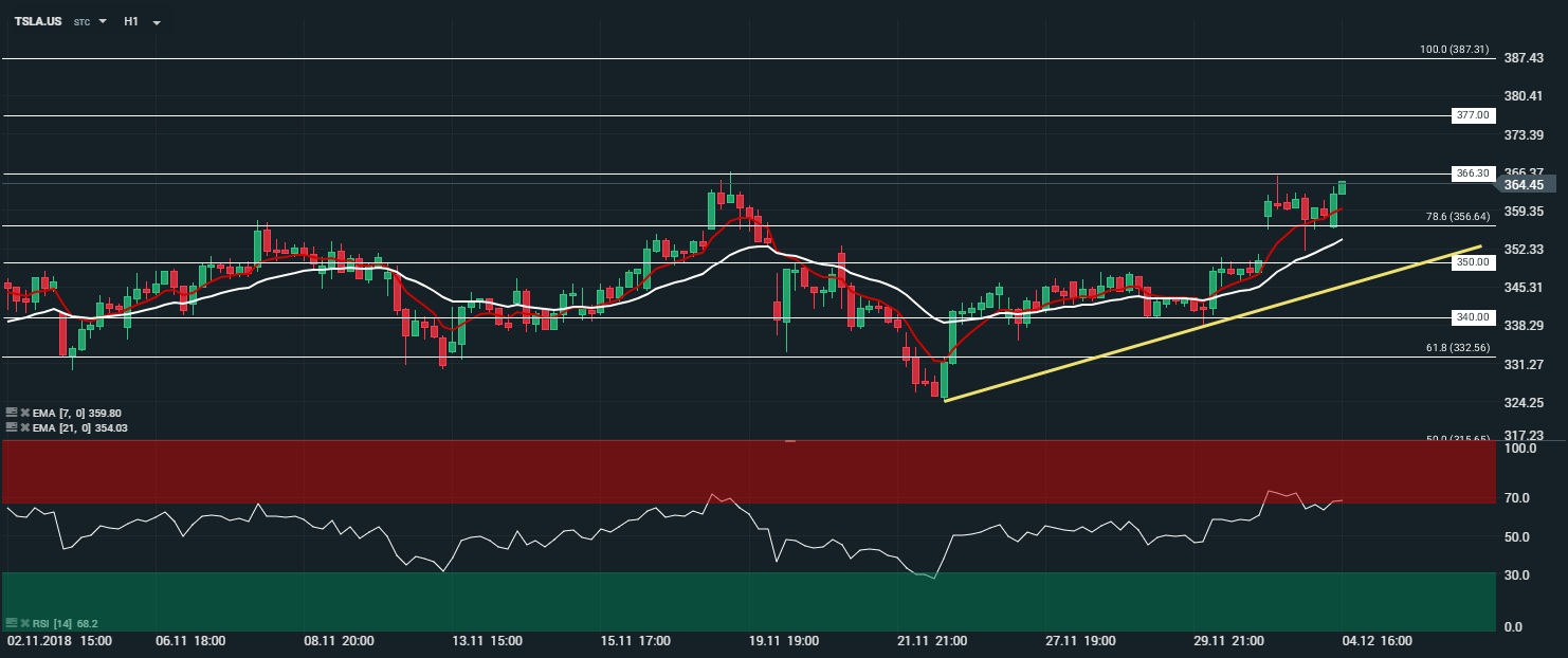 Représentation du titre Tesla (TSLA.US), en unité horaire (H1)