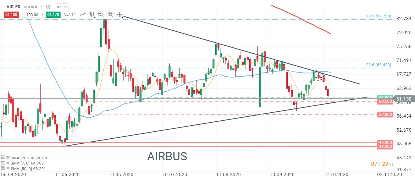La valeur Airbus (AIR.FR) a été pénalisée par l'annonce d'un couvre-feu la veille. Une réstriction qui touche 90% des métrolpoles désservies par un aéroport internationnal, et qui pourrait aboutir à de nouvelles mesures qui réstreindraient la mobilité au sein de l'UE, mais également à l'internationnal.