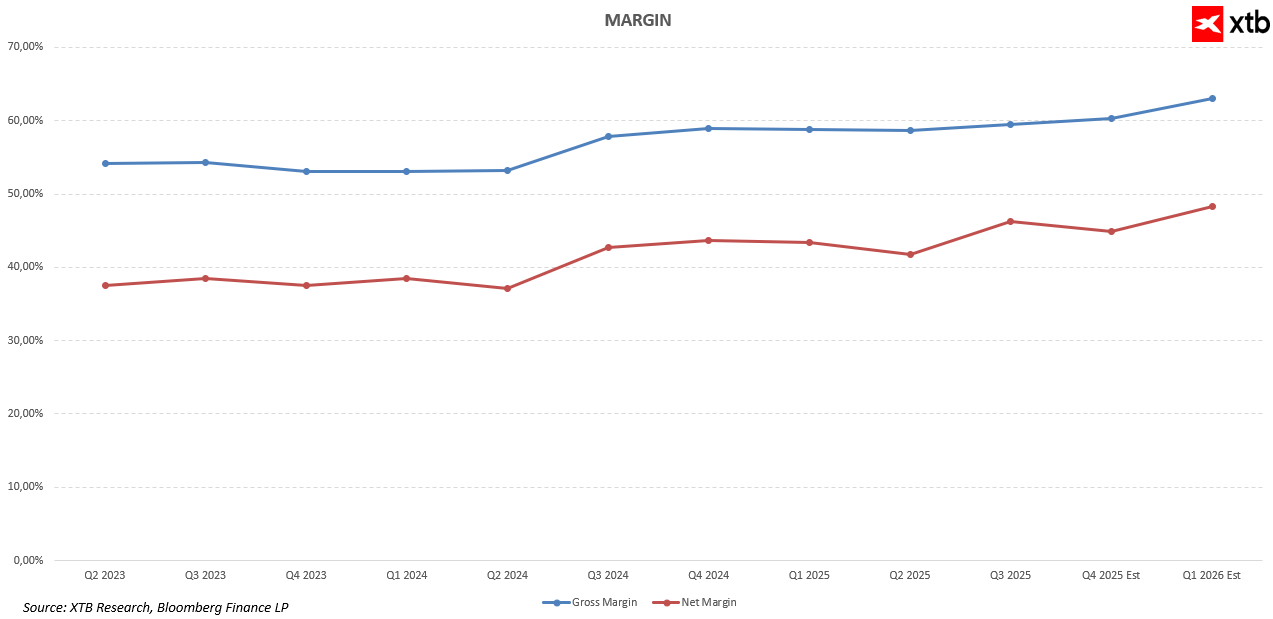 Les marges illustrent cette performance opérationnelle. La marge brute s’établit à 62,3%, tandis que la marge opérationnelle atteint 54,0% et la marge nette 48,3%, des niveaux rarement observés dans l’industrie des semi-conducteurs.