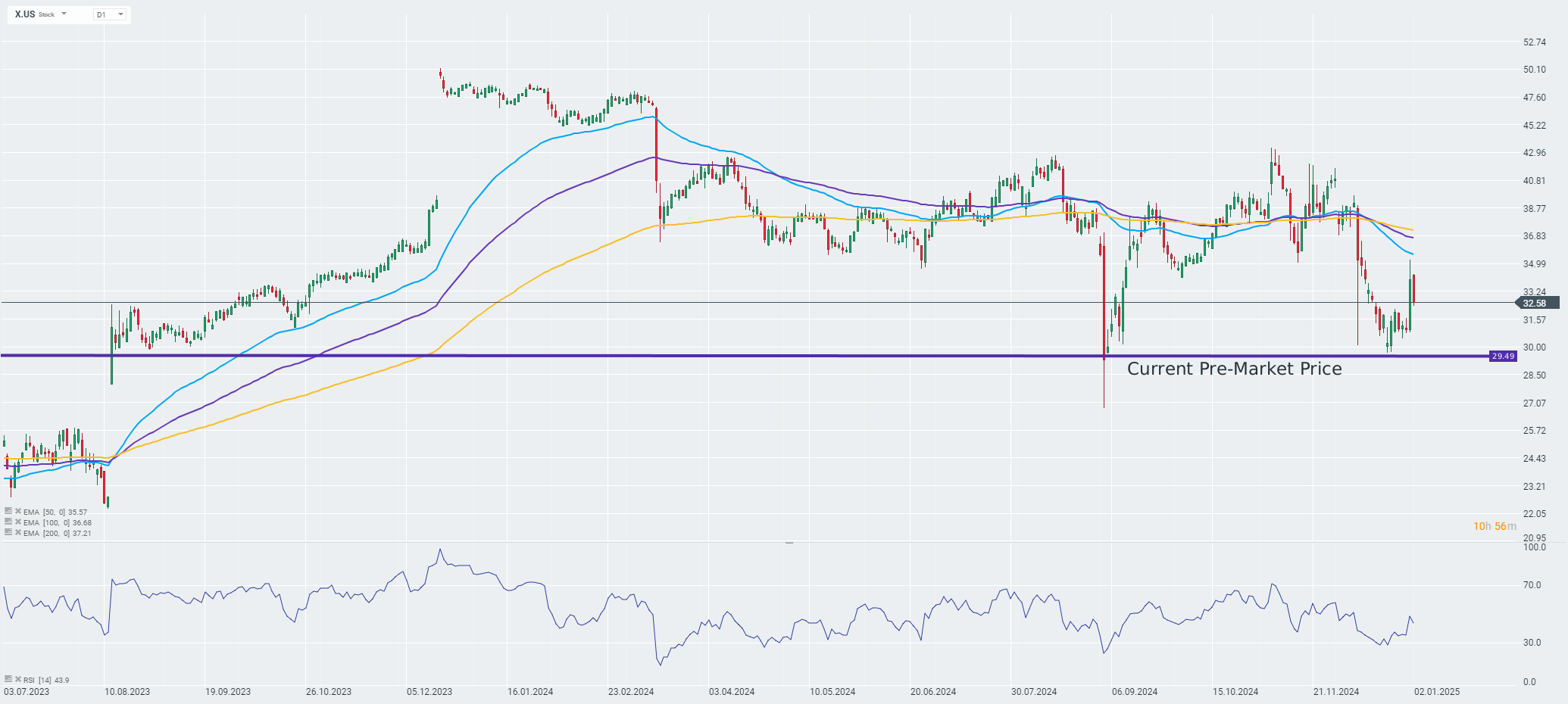 La décision potentielle de M. Biden ne devrait donc pas être surprenante. Toutefois, l'offre élevée de Nippon Steel à la toute fin de l'année a donné à certains investisseurs une lueur d'espoir quant à la finalisation de l'opération, comme le montre le comportement du cours. Une offre publique d'achat spéciale, rapportée par le Washington Post, pourrait également avoir rendu ce scénario plus probable. Dans le cadre de cette offre, l'entreprise a proposé au gouvernement américain d'opposer son veto à toute réduction de la production d'acier par US Steel.