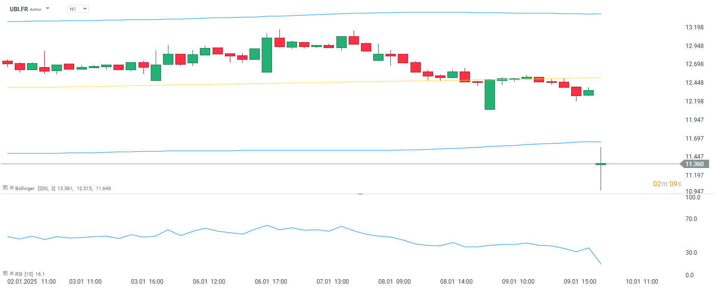 Ubisoft (UBI.FR), en baisse de 7,54% à 11,40 euros, a reporté la sortie d'Assassin's Creed Shadows au 20 mars 2025 et réduit sa prévision de chiffre d'affaires annuel à 1,9 milliard d'euros contre 1,95 milliard auparavant.