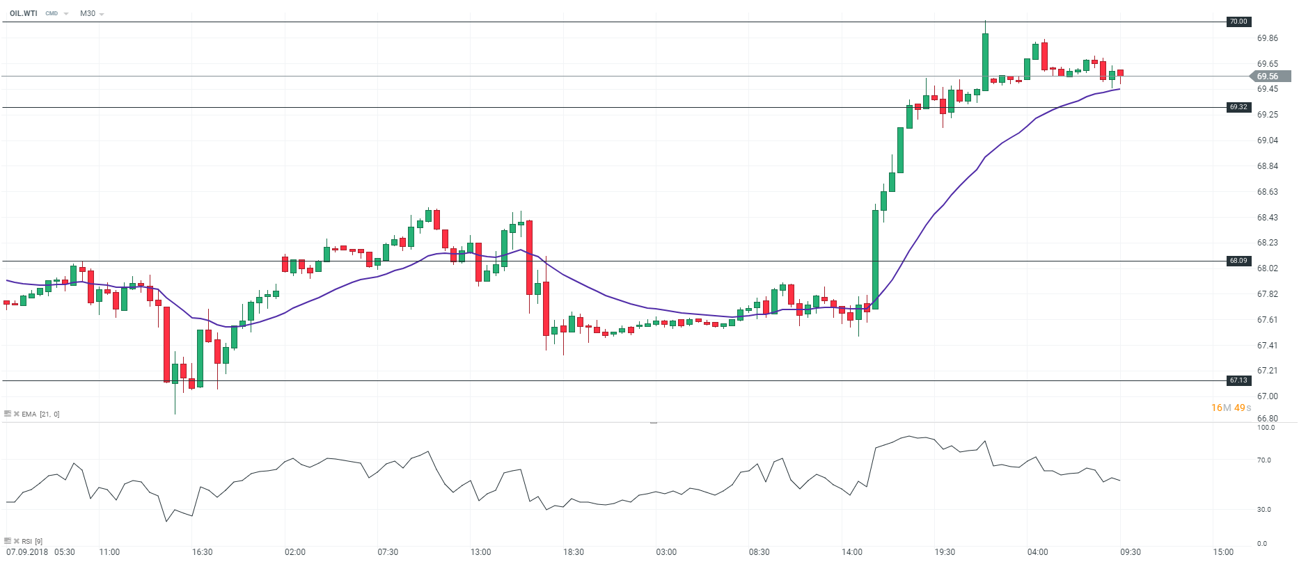 D’après l’American Petroleum Institute (API), les stocks de brut se sont contractés de 8,63 millions de barils aux Etats-Unis pour la semaine terminée au 7 septembre. Bien sûr, cette excellente information devra être confirmée ce jour par le département de l’Energie (DoE) américain. Au moment où nous écrivons ces lignes, le consensus anticipe une baisse des stocks de brut de 1,3 millions de barils. En revanche, les opérateurs s’attendent à une nette augmentation des stocks d’essence et des produits distillés (+1,44 et +1,32 million de barils). Outre la thématique iranienne, les cours du pétrole sont soutenus par les menaces de perturbation relatives à l’ouragan Florence. Pour conclure, nous avons un biais positif sur le contrat WTI et pensons que l’actif pourrait retrouver le seuil des 70 $ le baril à court terme.
