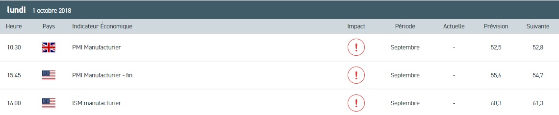 - L’indice ISM d’activité manufacturier du mois de septembre aux Etats-Unis