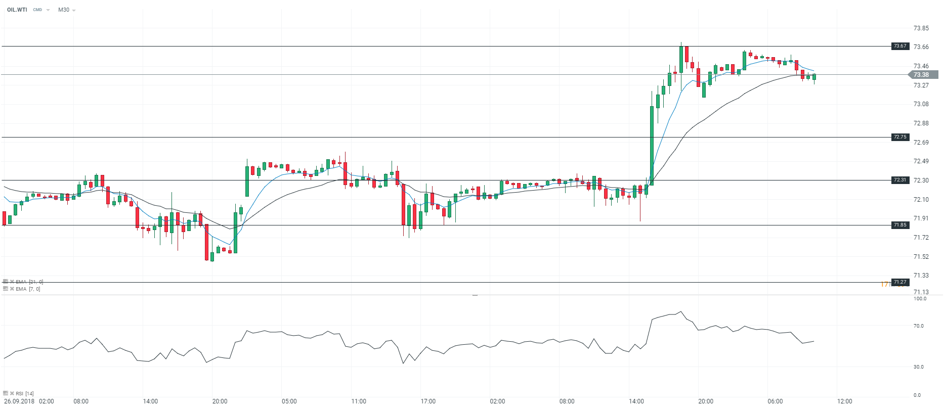 Le contrat WTI a terminé vendredi en forte hausse (+1,57 %) à 73,25 dollars le baril, d’autant plus qu’il a gagné plus de 5 % sur le seul mois de septembre. Bien sûr, les cours sont soutenus par la perspective d’une contraction de l’offre mondiale de pétrole. Par ailleurs, selon Baker Hughes, l’activité pétrolière aux Etats-Unis s’est légèrement contractée la semaine dernière. En effet, le nombre de puits forés a reculé à 863, contre 866 pour la semaine achevée au 21 septembre. Enfin, les pays de l’OPEP ont commencé à augmenter leur production journalière de pétrole afin de compenser le « manque à produire » iranien.