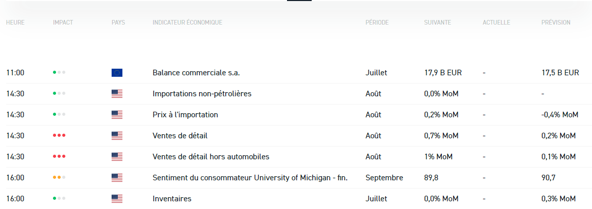 - Ventes de détail pour le mois d’août aux Etats-Unis à 14h30