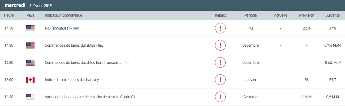Concernant les matières premières énergétiques, l’American Petroleum Institute (API) a fait état d’une hausse des stocks de pétrole aux US de 2,51 millions barils pour la semaine achevée au 1er février. Sans surprise, cette donnée pénalise les cours du contrat WTI à court terme. Toutefois, l’information de l’API devra être confirmée ce jour par le département de l’Energie (DoE) américain. Pour l’heure, le consensus anticipe une hausse des réserves de brut et d’essence de respectivement 2,7 millions et 1,6 million de barils. Pour conclure, nous avons un biais neutre sur le WTI et attendrons la publication du DoE pour prendre position sur l’actif.