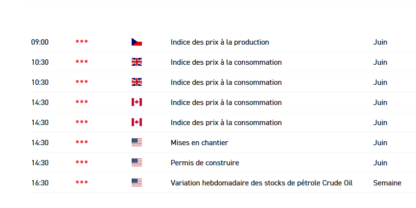 Fait à noter, les places américaines ont fini hier en territoire négatif tandis que les européennes ont clôturé en hausse. Portés par les bons résultats des financières américaines, les indices du Vieux Continent ont rallié des plus hauts hebdomadaires. De l’autre côté de l’Atlantique, les derniers propos du président américain D.Trump ont plombé l’ambiance à Wall Street. Ce dernier brandissant à nouveau la menace de la barrière douanière (nul besoin de préciser le destinataire). Ce mercredi, les animateurs de marchés seront intéressés par plusieurs publications. A 10h30, nous prendrons connaissance de l’indice des prix à la consommation (IPC) au Royaume-Uni, et à 11h, celui de la zone euro. Dans l’après-midi, les permis de construction aux Etats-Unis et l’IPC canadien (14h30) seront attentivement scrutés. Enfin, les stocks hebdomadaires de pétrole aux Etats-Unis (16h30) auront une influence sur le Brent et le WTI.