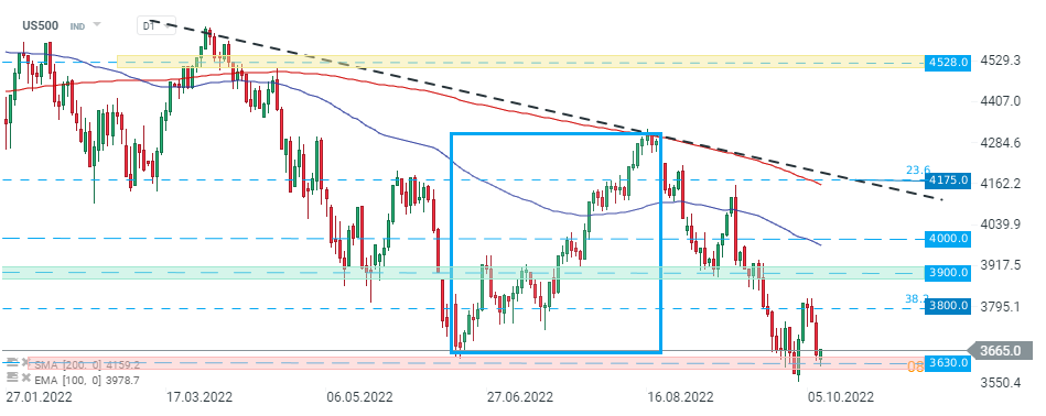 L'US500 a reculé après que les acheteurs n'ont pas réussi à franchir la résistance clé à 3800 pts jeudi, ce qui est marqué par des réactions de prix précédentes et un retracement de Fibonacci de 38,2% de la vague haussière lancée en mars 2020. Cependant, le mouvement à la baisse a été stoppé aux alentours du support à 3630 pts. et tant que le prix se situe au-dessus, une autre impulsion à la hausse peut être lancée. Source : xStation5