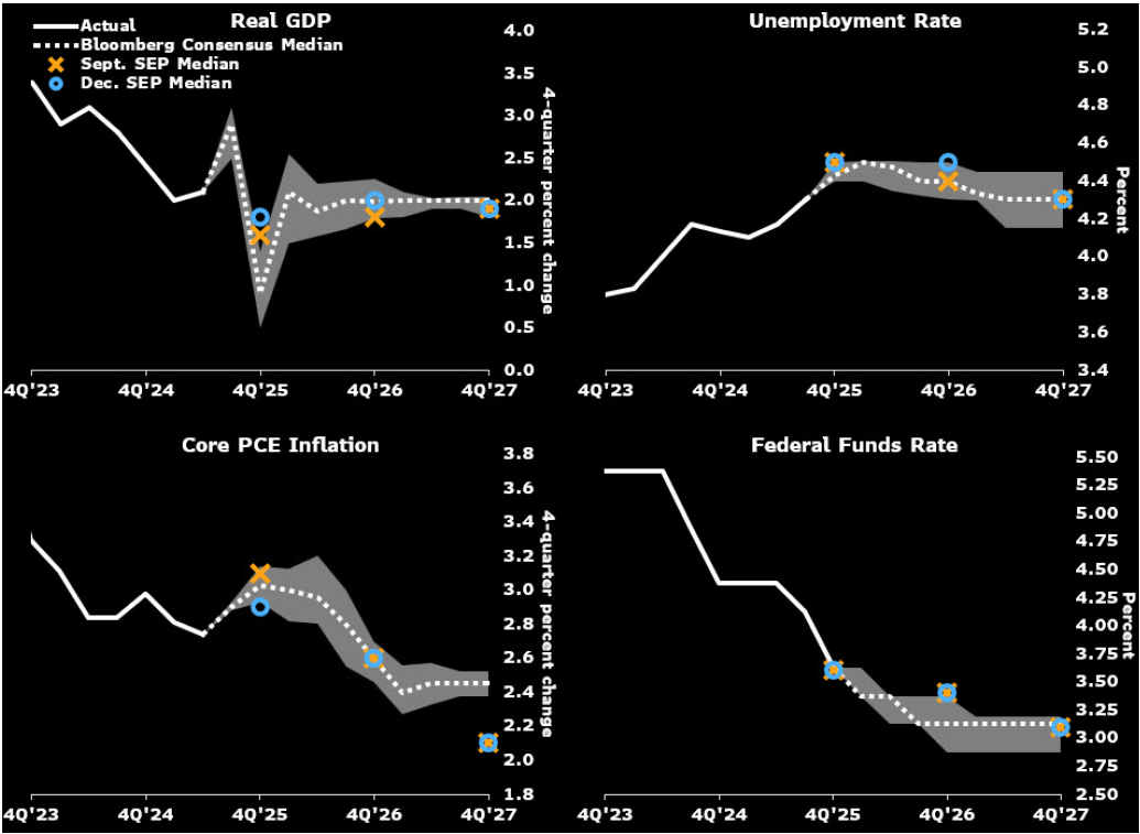 Le PCE de base pour 2025 devrait être révisé à la baisse à 2,9 % (contre 3,1 %). Baisse de l'inflation + hausse des prévisions de chômage = une trajectoire d'assouplissement plus défendable.