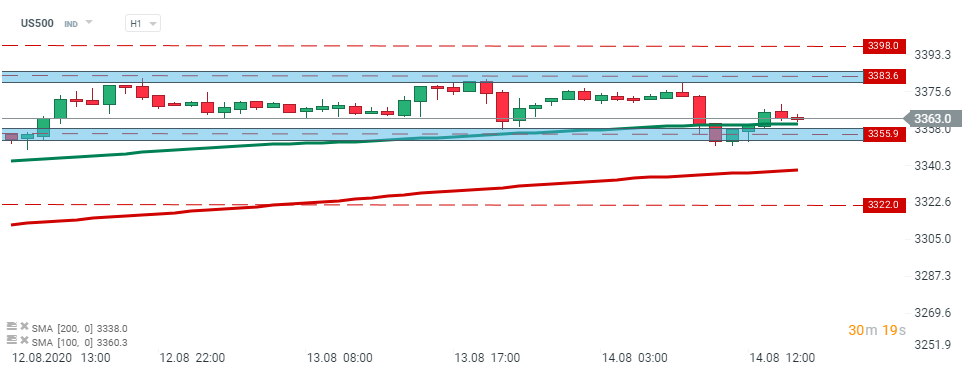 S&P500 (US500) se négocie dans un mouvement latéral près de son record historique. Si les humeurs optimistes réapparaissent, l'indice pourrait tester la résistance 3398 pts. Cependant, si les vendeurs parviennent à prendre le contrôle, alors le support à 3322,0 pts pourrait être en danger. Source : xStation5
