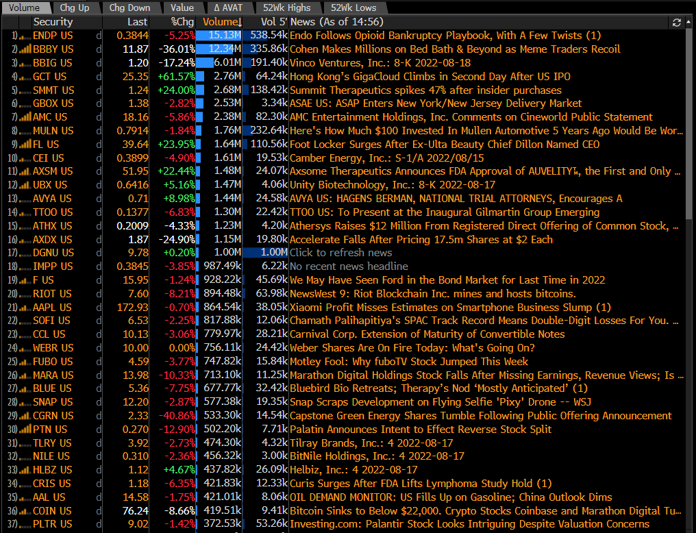 L'attention des investisseurs continue d'être captée par la situation des " actions mèmes ". Les actions de Bed Bath & Beyond (BBBY.US) perdent près de 40% à l'ouverture. Les actions de GameStop (GME.US) perdent 9%. Ryan Cohen a vendu toutes ses actions BBBY, réalisant un bénéfice de 58 millions de dollars.
