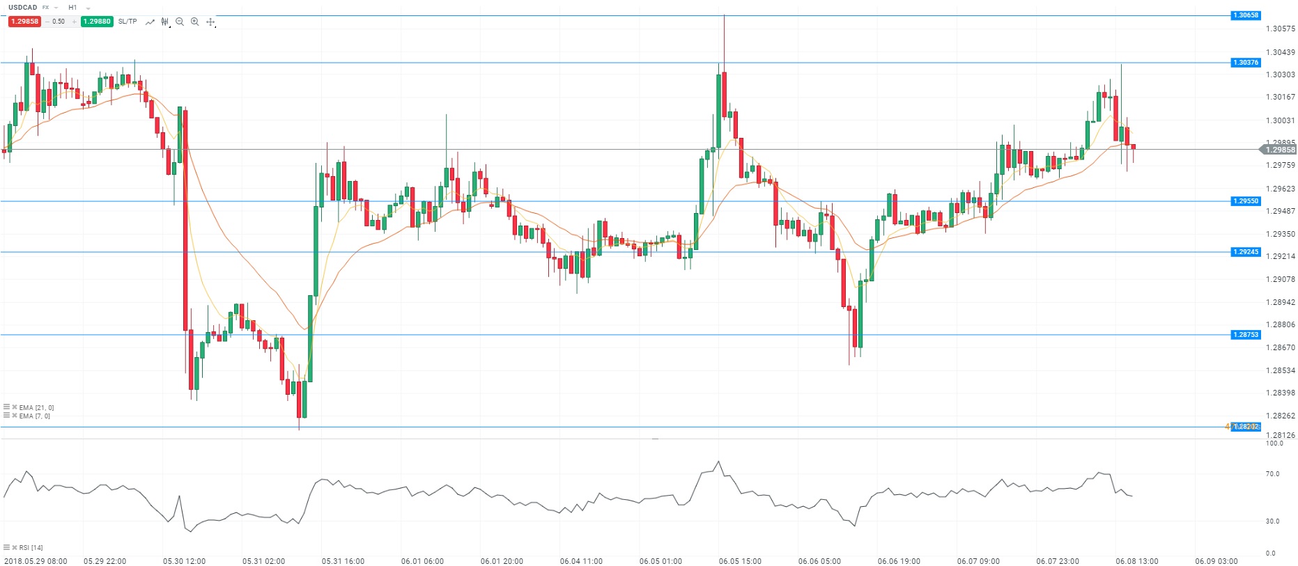Représentation technique de la paire USDCAD, en H1