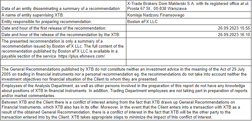 "Ce contenu est une communication marketing au sens de l'art. 24, paragraphe 3, de la directive 2014/65 /UE du Parlement européen et du Conseil du 15 mai 2014 concernant les marchés d'instruments financiers et modifiant la directive 2002/92 /CE et la directive 2011/61 /UE (MiFID II). La communication marketing n'est pas une recommandation d'investissement ou une information recommandant ou suggérant une stratégie d'investissement au sens du règlement (UE) n°596/2014 du Parlement européen et du Conseil du 16 avril 2014 sur les abus de marché (règlement sur les abus de marché) et abrogeant la directive 2003/6 / CE du Parlement européen et du Conseil et directives 2003/124 / CE, 2003/125 / CE et 2004/72 / CE de la Commission et règlement délégué (UE) 2016/958 de la Commission du 9 mars 2016 complétant le règlement (UE) n°596/2014 du Parlement européen et du Conseil en ce qui concerne les normes techniques de réglementation relatives aux modalités techniques de présentation objective de recommandations d'investissement ou d'autres informations recommandant ou suggérant une stratégie d'investissement et pour la divulgation d'intérêts particuliers ou d'indications de conflits d'intérêt ou tout autre conseil, y compris dans le domaine du conseil en investissement, au sens de l'article L321-1 du Code monétaire et financier. L’ensemble des informations, analyses et formations dispensées sont fournies à titre indicatif et ne doivent pas être interprétées comme un conseil, une recommandation, une sollicitation d’investissement ou incitation à acheter ou vendre des produits financiers. XTB ne peut être tenu responsable de l’utilisation qui en est faite et des conséquences qui en résultent, l’investisseur final restant le seul décisionnaire quant à la prise de position sur son compte de trading XTB. Toute utilisation des informations évoquées, et à cet égard toute décision prise relativement à une éventuelle opération d’achat ou de vente de CFD, est sous la responsabilité exclusive de l’investisseur final. Il est strictement interdit de reproduire ou de distribuer tout ou partie de ces informations à des fins commerciales ou privées. Les performances passées ne sont pas nécessairement indicatives des résultats futurs, et toute personne agissant sur la base de ces informations le fait entièrement à ses risques et périls. Les CFD sont des instruments complexes et présentent un risque élevé de perte rapide en capital en raison de l'effet de levier. 71% de comptes d'investisseurs de détail perdent de l'argent lors de la négociation de CFD avec ce fournisseur. Vous devez vous assurer que vous comprenez comment les CFD fonctionnent et que vous pouvez vous permettre de prendre le risque probable de perdre votre argent. Avec le Compte Risque Limité, le risque de pertes est limité au capital investi."