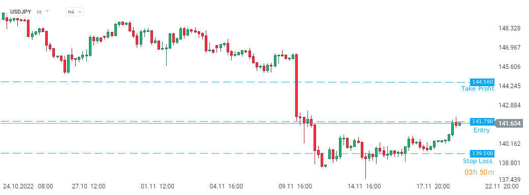 Le Crédit Agricole recommande de prendre une position à l'achat sur USDJPY à 141,79 avec un objectif de 144,56 et un ordre stop loss placé à 139,50. Source : xStation5
